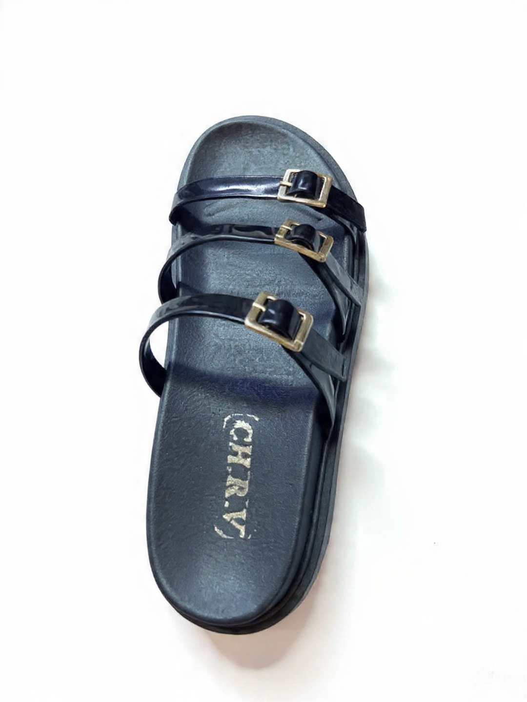 Refined and lightweight! Black mule with three thin patent-effect straps and square gold buckles. Flexible and comfortable flat sole. This minimalist and elegant style elongates the foot and goes with everything. Embrace chic minimalism with this CHRY flat mule with three straps. Its clean design emphasizes delicacy: three thin straps in glossy black patent leather cross the foot for light and feminine support. Each strap is adorned with a small square gold buckle that adds a touch of jewelry and allows you to adjust the sandal. The patent leather catches the light and gives an instantly sophisticated look. The flat black sole is flexible and slightly anatomical to follow the foot's movement without fatigue. Its slim profile elongates the leg and gives an elegant look, even in casual wear. Product Details: Style: Slip-on mule sandal with three thin straps Strap Material: Glossy black patent faux leather Color: Black with gold buckles Sole: Flat, flexible, black Brand: CHRY Closure: Decorative and adjustable buckles Style: Minimalist, chic, urban, evening, summer Ideal with: A long, slit dress, flowing trousers, a pencil skirt, or cropped skinny jeans. Perfect for the city, a summer evening, or any event where you want to stay elegant without heels. |